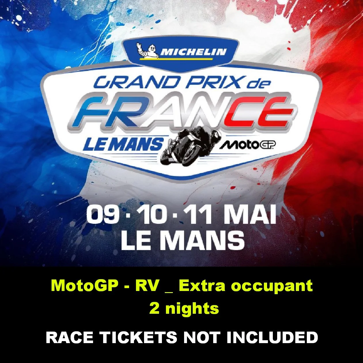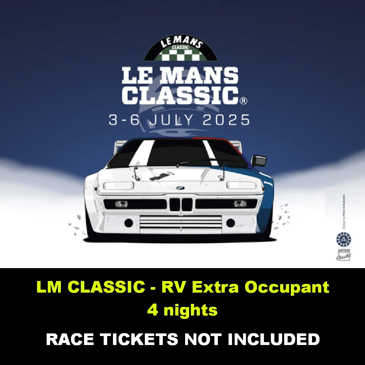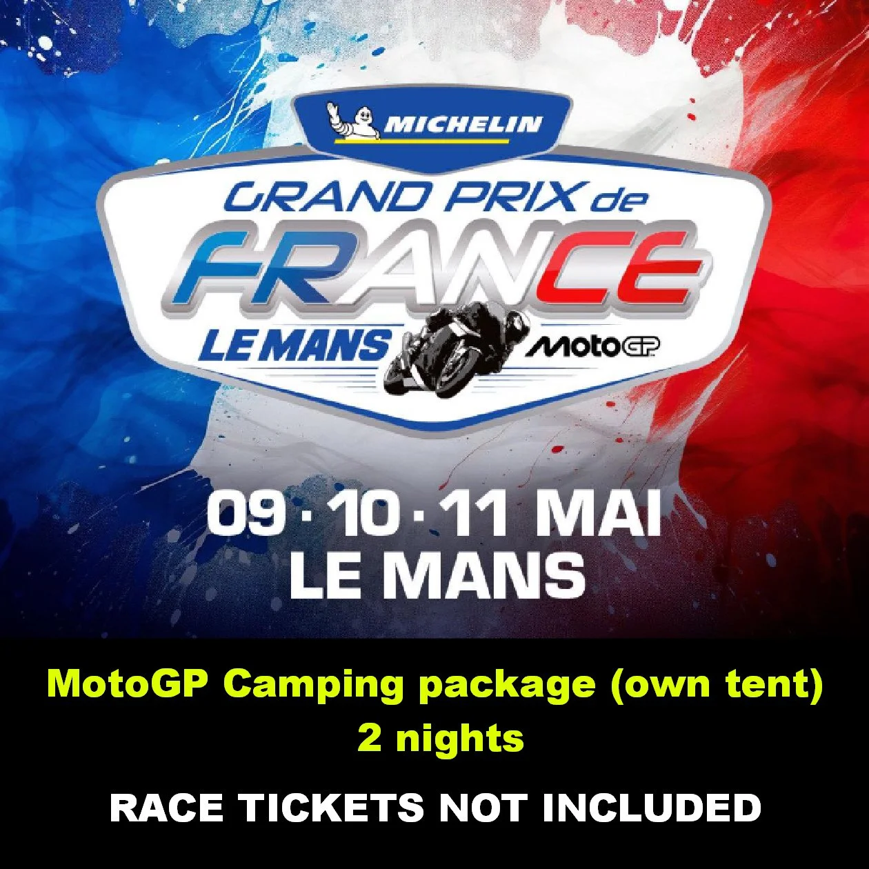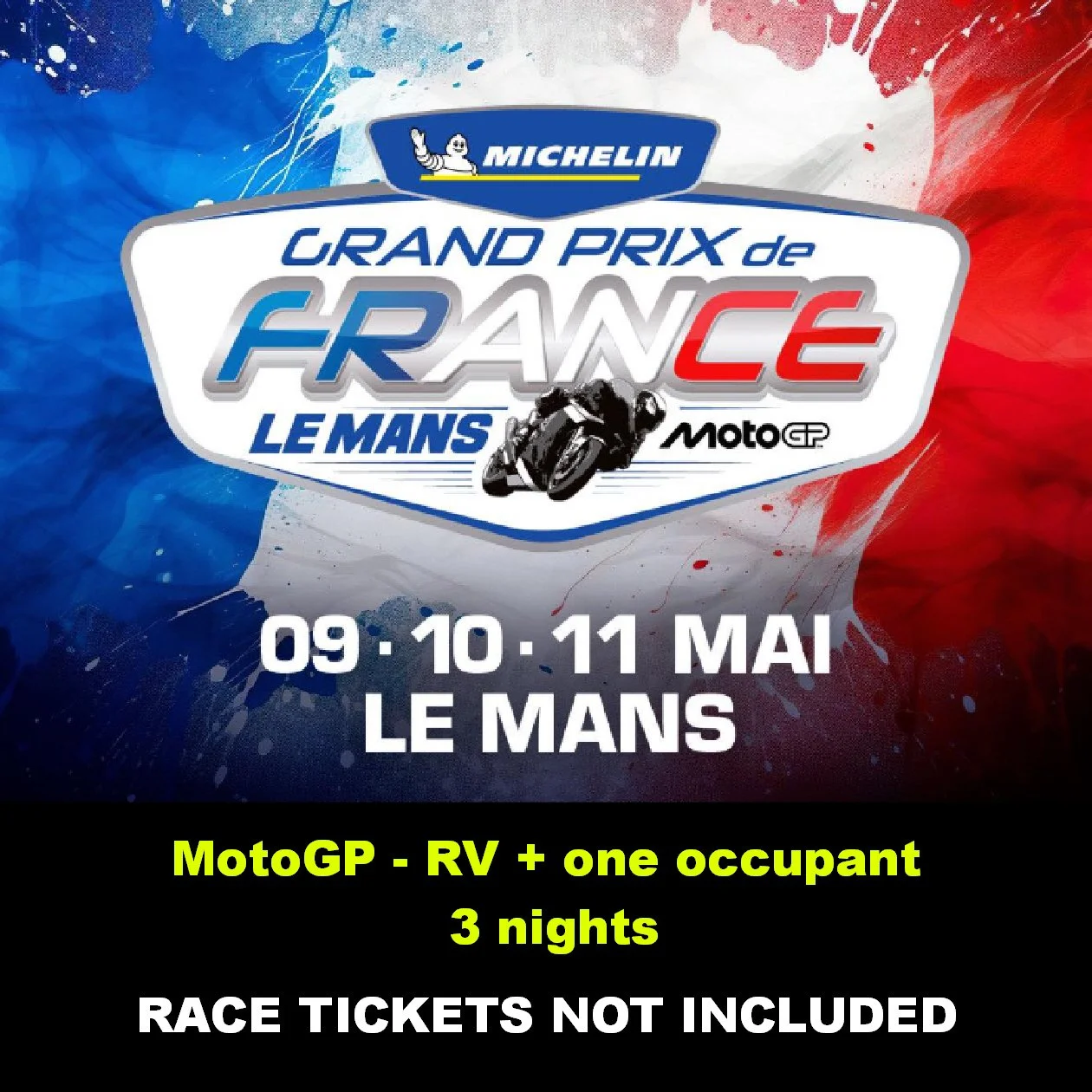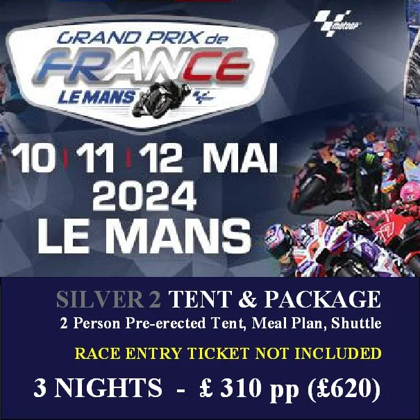 Categories: All 2025 MotoGP de France MotoGP Camping (Own tent) Moto GP RV Options Moto GP Package + Tent Hire - Bronze Moto GP Package + Tent Hire - Silver Moto GP Package + Tent Hire - Gold 2025 Le Mans 24 LM24 Camping (Own tent) LM24 RV Options LM24 Package + Tent Hire - Bronze LM24 Package + Tent Hire - Silver LM24 Package + Tent Hire - Gold 2025 Le Mans Classic LM Classic Package + Tent Hire - Gold LM Classic Package + Tent Hire - Silver LM Classic Package + Tent Hire - Bronze LM Classic RV Options LM Classic Camping (Own tent) BOOK HERE All | 2025 MotoGP de France | 2025 Le Mans 24 | 2025 Le Mans Classic | LMCLASSIC - RV + One occupant - 5 nights £200.00 LM24 - RV + One occupant - 3 nights £165.00 LMCLASSIC - RV + One occupant - 4 nights £185.00 Sold out LMCLASSIC - RV Extra Occupant - 3 nights £150.00 LMCLASSIC - RV Extra Occupant - 4 nights £165.00 LMCLASSIC - RV Extra Occupant - 5 nights £175.00 LM24 - RV + One occupant - 4 nights £185.00 LMCLASSIC - Silver 3 Person package - 5 nights £675.00 LMCLASSIC - Silver 3 Person package - 4 nights £615.00 LMCLASSIC - Silver 3 Person package - 3 nights £540.00 LMCLASSIC - Silver 2 Person package - 5 nights £450.00 LMCLASSIC - Silver 2 Person package - 4 nights £410.00 LMCLASSIC - Silver 2 Person package - 3 nights £360.00 LMCLASSIC - Bronze package - 3 nights £172.50 LMCLASSIC - Bronze package - 4 nights £195.00 LMCLASSIC - Bronze package - 2 nights £135.00 LMCLASSIC - Bronze package - 5 nights £212.50 LMCLASSIC - Gold 3 Person package - 3 nights £607.50 LMCLASSIC - Gold 3 Person package - 5 nights £787.50 LMCLASSIC - Gold 3 Person package - 4 nights £705.00 LMCLASSIC - Gold 2 Person package - 3 nights £405.00 LMCLASSIC - Gold 2 Person package - 4 nights £470.00 LMCLASSIC - Gold 2 Person package - 5 nights £525.00 LM24 - Silver 2 Person package - 3 nights £360.00 LMCLASSIC - Camping package - 5 nights £175.00 LMCLASSIC - Camping package - 4 nights £165.00 LMCLASSIC - Camping package - 3 nights £150.00 LMCLASSIC - Camping package - 2 nights £120.00 Moto GP - RV + One occupant - 4 nights £160.00 Moto GP - RV + One occupant - 3 nights £140.00 Moto GP - RV + One occupant - 2 nights £120.00 Moto GP RV Extra Occupant - 4 nights £140.00 Moto GP RV Extra Occupant - 3 nights £125.00 Moto GP RV Extra Occupant - 2 nights £110.00 Moto GP Gold 3 Person package - 2 nights £420.00 Moto GP Gold 3 Person package - 3 nights £510.00 Moto GP Gold 3 Person package - 4 nights £600.00 Moto GP Gold 2 Person package - 4 nights £400.00 Moto GP Gold 2 Person package - 2 nights £280.00 Moto GP Gold 2 Person package - 3 nights £340.00 Moto GP Silver 3 Person package - 3 nights £465.00 Moto GP Silver 3 Person package - 4 nights £540.00 Moto GP Silver 2 Person package - 4 nights £360.00 Moto GP Silver 2 Person package - 3 nights £310.00 Moto GP Silver 2 Person package - 2 nights £260.00 Moto GP Bronze package - 4 nights £175.00 Moto GP Bronze package - 3 nights £150.00 Moto GP Bronze package - 2 nights £125.00 Moto GP Camping package - 4 nights £140.00 Moto GP Camping package - 3 nights £125.00 Moto GP Camping package - 2 nights £110.00 LM24 - RV Extra Occupant - 3 nights £150.00 LM24 - RV Extra Occupant - 4 nights £165.00 LM24 - RV Extra Occupant - 5 nights £175.00 LM24 - Camping package - 2 nights £120.00 LM24 - Camping package - 3 nights £150.00 LM24 - Camping package - 4 nights £165.00 LM24 - Camping package - 5 nights £175.00 LMCLASSIC - RV + One occupant - 3 nights £165.00 LM24 - RV + One occupant - 5 nights £200.00 LM24 - Bronze package - 2 nights £135.00 LM24 - Bronze package - 3 nights £172.50 LM24 - Bronze package - 4 nights £195.00 LM24 - Bronze package - 5 nights £212.50 Moto GP Silver 3 Person package - 2 nights £390.00 LM24 - Silver 2 Person package - 4 nights £410.00 LM24 - Silver 2 Person package - 5 nights £450.00 LM24 - Silver 3 Person package - 3 nights £540.00 LM24 - Silver 3 Person package - 4 nights £615.00 LM24 - Silver 3 Person package - 5 nights £675.00 LM24 - Gold 2 Person package - 3 nights £400.00 LM24 - Gold 2 Person package - 4 nights £450.00 LM24 - Gold 2 Person package - 5 nights £500.00 LM24 - Gold 3 Person package - 3 nights £600.00 LM24 - Gold 3 Person package - 4 nights £705.00 LM24 - Gold 3 Person package - 5 nights £787.50